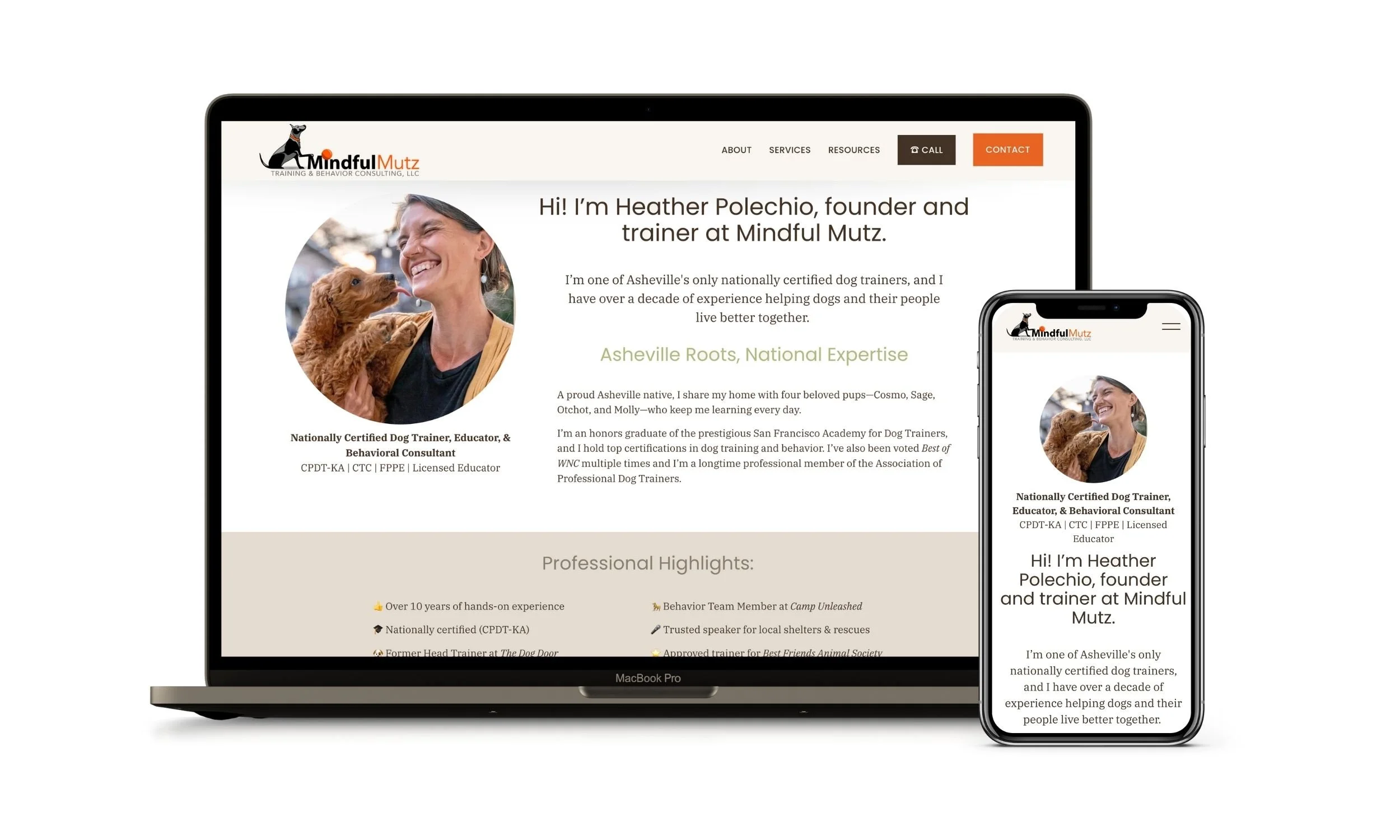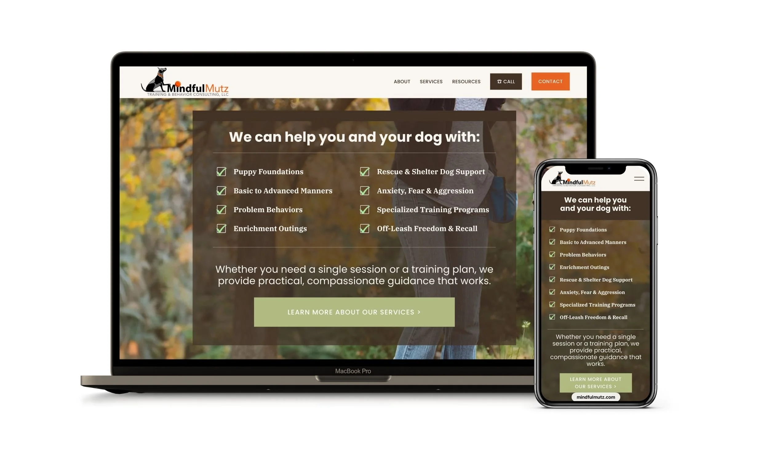 Mindful Mutz contacted me with a problem: the existing website no longer reflected the quality of the business or the care-focused, personal nature of the brand. Navigation was unclear, mobile performance was limited, and the overall experience felt dated.